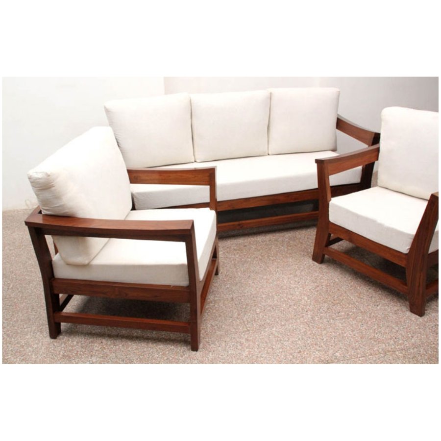 Make In India, Made of indian sheeshamwood, Indus Sofa 3+1+1 set mohogany finish. This sofa gives decorable, simple and elegant look to living room. fine quality of foam and fabrics used to do upholstry of this sofa. Its modern type Indian sofa to relax comfortably.